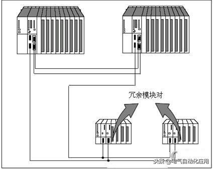 在这种方式下,即使连接I/O从站CPU故障也不会影响I/O模块的可用性。 4.单机模式H CPU中的I/O冗余,连接方式如下图所示: