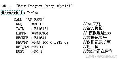 当M0.0上升沿使能时,将写入的参数从MB100~MB166传递到输入地址为100开始的模板,修改其数据记录1的参数,同时也将参比接点的温度也写入模板的设定位置。