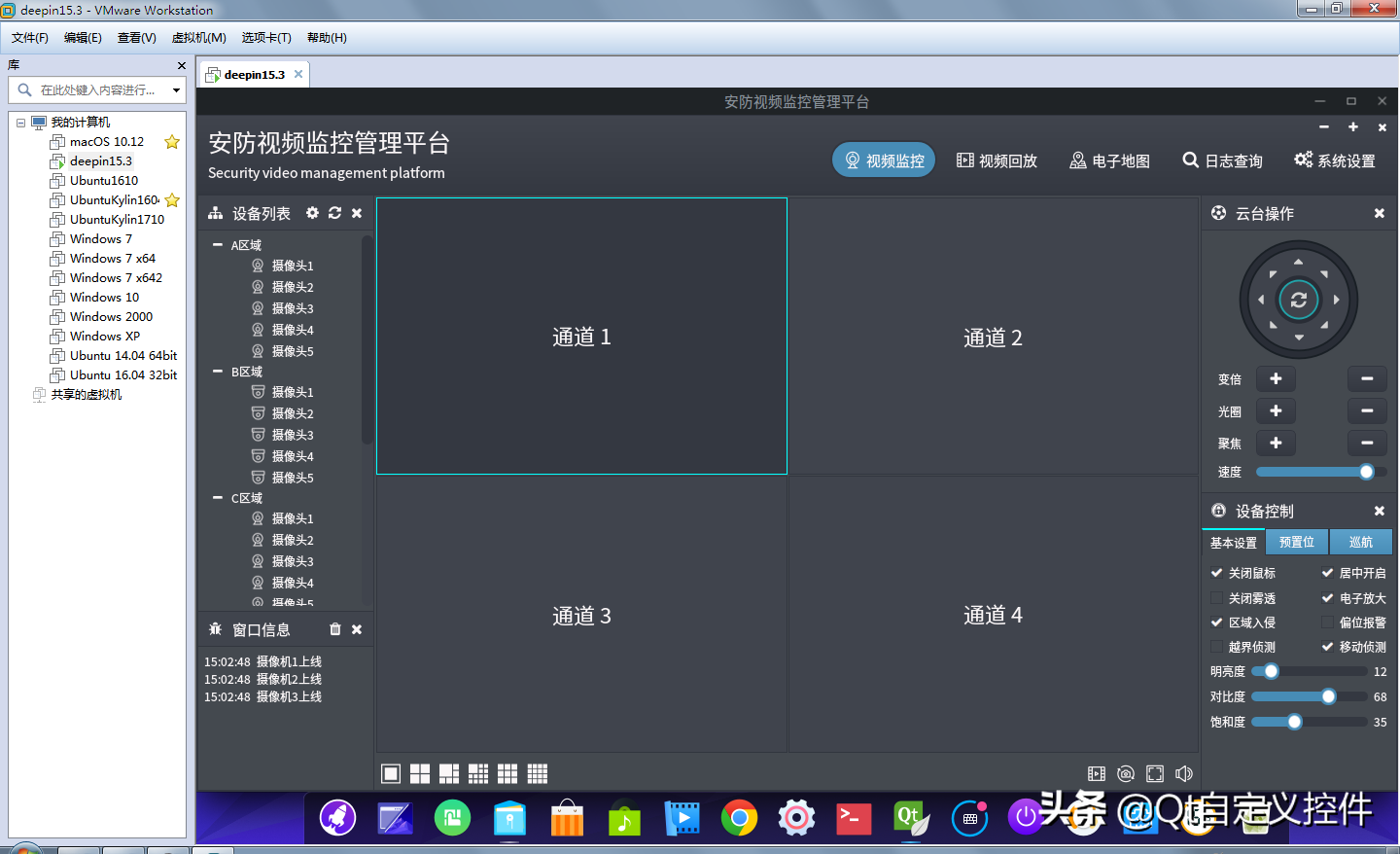一、前言 视频监控系统在整个安防领域,已经做到了烂大街的程序,全国起码几百家公司做过类似的系统,当然这一方面的需求量也是非常旺盛的,各种定制化的需求越来越多,尤其是这几年借着人脸识别的东风,发展更加迅猛,人脸识别相关的技术和应用这几年处于风口浪尖,衍生了特别多的应用产品,各种人脸识别的产品遍地开花,刷脸门禁,车站机场人脸识别,刷脸取票等,但是其实大部分内行人士可能都比较绝望,外行感觉像看科幻片一样,老板们各种打鸡血,今天几个亿明天几个亿。 纵观Qt的应用场景领域,在国内,基本上在安防、航天船舶、教育、工业控制领域,占有比较大的比例,其实个人非常喜爱Qt的,从没见过如此完美的API封装,包括命名,最牛逼的就是跨平台特性,可以说完爆.NET的跨平台,甚至连那种几十兆的嵌入式linux版本都能运行,这就使得成本大大降低,提高了产品的丰富性。自从用了Qt以后,就再也不想用VC/VB/C#等。 国内安防领域,当属海康大华第一第二,这两个单位也是有大量的Qt职位,使得Qt这么一个极其小众的编程开发环境能够发挥出更大的魅力,本系列文章将会介绍如何用Qt来编写一个基础的视频监控系统,提供部分核心代码,欢迎各位提出建议。 二、系统介绍监控系统是由摄像、传输、控制、显示、记录登记5大部分组成。摄像机通过同轴视频电缆将视频图像传输到控制主机,控制主机再将视频信号分配到各监视器及录像设备,同时可将需要传输的语音信号同步录入到录像机内。 通过控制主机,操作人员可发出指令,对云台的上、下、左、右的动作进行控制及对镜头进行调焦变倍的操作,并可通过控制主机实现在多路摄像机及云台之间的切换。利用特殊的录像处理模式,可对图像进行录入、回放、处理等操作,使录像效果达到最佳。 视频监控系统由实时控制系统、监视系统及管理信息系统组成。实时控制系统完成实时数据采集处理、存储、反馈的功能;监视系统完成对各个监控点的全天候的监视,能在多操作控制点上切换多路图像;管理信息系统完成各类所需信息的采集、接收、传输、加工、处理,是整个系统的控制核心。视频监控系统是安全防范系统的组成部分,它是一种防范能力较强的综合系统。视频监控以其直观、方便、信息内容丰富而广泛应用于许多场合。 三、功能特点1. 支持16画面切换,全屏切换等,包括1+4+6+8+9+16画面切换。 2. 支持alt+enter全屏,esc退出全屏。 3. 自定义信息框+错误框+询问框+右下角提示框。 4. 17套皮肤样式随意更换,所有样式全部统一,包括菜单等。 5. 云台仪表盘鼠标移上去高亮,八个方位精准识别。 6. 底部画面工具栏(画面分割切换+截图声音等设置)移上去高亮。 7. 可在配置文件更改左上角logo+中文软件名称+英文软件名称。 8. 封装了百度地图,三维切换,设备点位,鼠标按下获取经纬度等。 9. 堆栈窗体,每个窗体都是个单独的qwidget,方便编写自己的代码。 10. 顶部鼠标右键菜单,可动态控制时间CPU+左上角面板+左下角面板+右上角面板+右下角面板的显示和隐藏,支持恢复默认布局。 11. 工具栏可以放置多个小图标和关闭图标。 12. 左侧右侧可拖动拉伸,并自动记忆宽高位置,重启后恢复。 13. 双击摄像机节点自动播放视频,双击节点自动依次添加视频,会自动跳到下一个,双击父节点自动添加该节点下的所有视频。 14. 摄像机节点拖曳到对应窗体播放视频,同时支持拖曳本地文件直接播放。 15. 视频画面窗体支持拖曳交换,瞬间响应。 16. 双击节点+拖曳节点+拖曳窗体交换位置,均自动更新url.txt。 17. 支持从url.txt中加载16通道视频播放,自动记忆最后通道对应的视频,软件启动后自动打开播放。 18. 右下角音量条控件,失去焦点自动隐藏,音量条带静音图标。 19. 集成百度地图,可以添加设备对应位置,自动生成地图,支持缩放和三维地图,提供地图风格选择,共12种风格。 20. 视频拖动到通道窗体外自动删除视频。 21. 鼠标右键可删除当前+所有视频,截图当前+所有视频。 22. 录像机管理、摄像机管理,可添加删除修改导入导出打印信息,立即应用新的设备信息生成树状列表,不需重启。 23. 在pro文件中可以自由开启是否加载地图。 24. 视频播放可选四种内核自由切换,vlc+ffmpeg+easyplayer+海康sdk,均可在pro中设置。 25. 高度可定制化,用户可以很方便的在此基础上衍生自己的功能,支持linux系统。 四、效果图