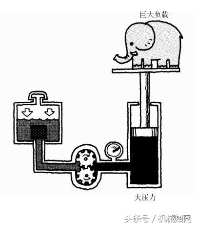 负载产生压力大部分压力来自负载本身。以下插图中,泵每时每刻供应着油。泵出的油寻找使它得以通过软管的最小阻力通道,从而作用于油缸。负载重量产生压力,压力的量则取决于负载大小。