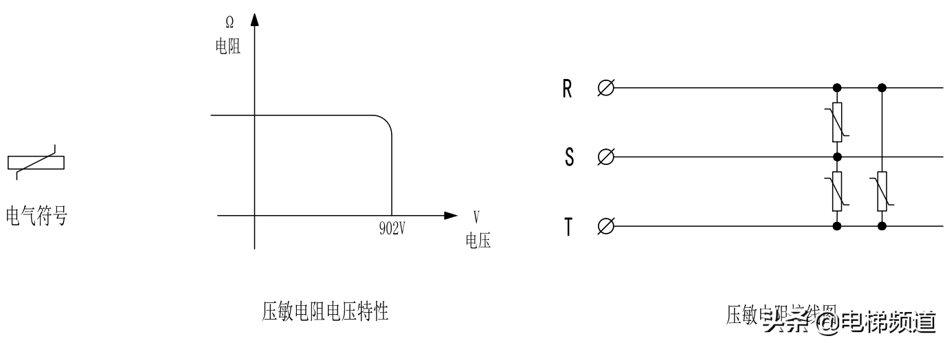 压敏电阻具有通流容量大,电压范围宽,响应时间短,抑制浪涌电压。主要用于各种设备过压保护,以及大气过压保护,即防雷压敏电阻,压敏电压(浪涌电压)为820V。用在变频器中主要防止高的电压串入到变频器的输入端。当输入电压小于820V时压敏电阻相当于断路,当电压大于820V时就相当于短路状态,