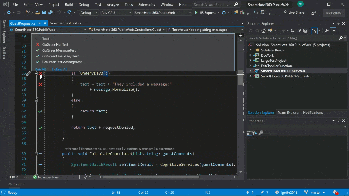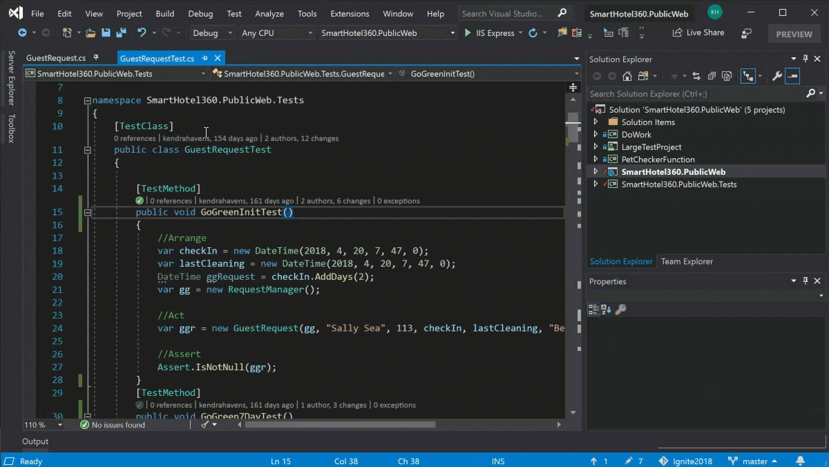 分析 - 了解有关代码的详细信息CodeLens 帮助你轻松找到重要见解,例如对代码所做的更改、这些更改的影响以及是否对方法进行了单元测试。 可一目了然地查看参考、作者、测试、提交历史记录和其他重要信息。
