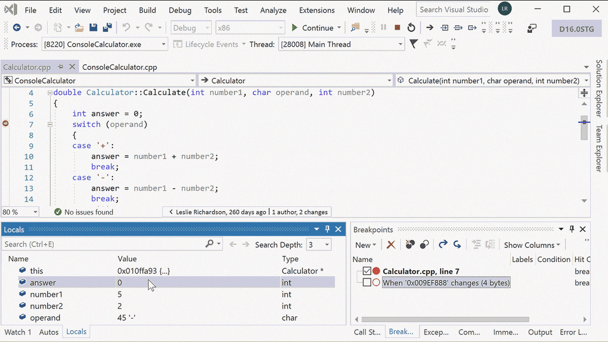 调试 - 快速找到并修复 bug借助 Visual Studio,可以使用断点和所需方法在要检查 bug 时暂停代码执行。 如果一步过长或遇到了意外的更改,可以回退到任何特定代码行,而无需重启会话或重新创建状态。
