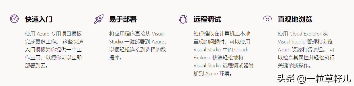 “部署” - 针对云进行构建使用适用于常见应用程序类型和本地 Azure 仿真程序的模板快速启动和运行,而无需 Azure 帐户。 还可以预配应用程序依赖项(例如 Azure SQL 数据库和 Azure 存储帐户),而无需离开 Visual Studio。 使用直接附加到应用程序的 Visual Studio 远程调试器快速诊断任何问题。