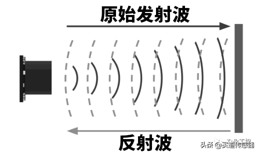 如上图所示,传感器发射超声波脉冲,当遇到被测物时该超声波脉冲会被反射,传感器接收到反射波通过计算该脉冲波的传播时间可以计算出传感器和被测物之间的距离。