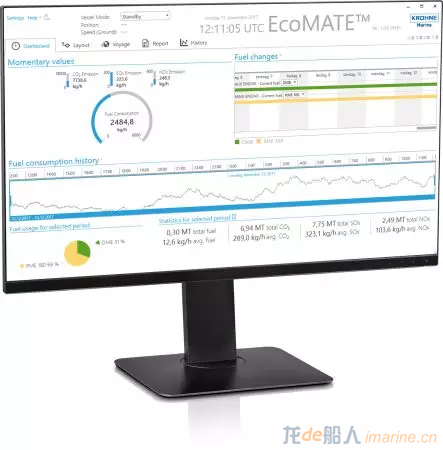 《中国制造2025》把海洋工程装备和高技术船舶作为十大重点发展领域之一。更明确了船舶领域下一步发展的重点:实现产品绿色化、智能化以及产品结构高端化。 远洋航运是目前燃料消耗很大的一个行业。它们共计每年燃烧约2.5亿吨,向空气中排放约10亿吨二氧化碳。造成这种情况的主要原因是船体和水之间的高度阻力,这会不断减慢船的速度。有数据表明,拖动占能源消耗的比例可能高达90%。毕竟,燃料消耗是运输成本的很大一部分。 KROHNE Marine在2017年推出了新版EcoMATE™:用于燃油消耗监测的软件系统现在加入了监测和报告船舶的碳排放功能。该系统能帮助船员,运营方和船东用独立的集成软件工具来对所有船型的相关数据进行监测,该工具可自动计算和报告排放和能效数据。随着中国的船舶行业的快速发展,同时,对绿色环保、能效、智能的重视日益增加,这套系统已正式进入中国,为中国船舶行业的绿色发展保驾护航。  EcoMATE™: 全新的船舶燃油消耗和碳排放监测系统