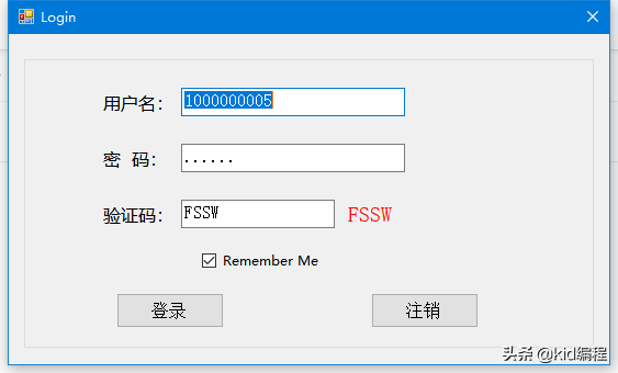 这段时间在给学生进行软件开发培训过程中,针对用户登录功能常见的记住密码功能,部分学生缺乏编程经验,不知道采用什么方法实现该功能,进而无法编程。本文主要针对记住密码功能实现给初学者提供建议与参考。首先给出记住密码实现页面,点击登录时针对记住密码自动填写用户名与密码。实现效果如下图:  登录窗口记住密码功能实现