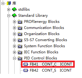 二、FB41简介在STEP7中的库中,有专门用于PID控制的FB块——FB41。PID控制必须在循环中断中执行,以确保其扫描、执行时间基本固定。本例中的CPU仅有OB35一个循环中断,因此,要在OB35中调用FB41。  图2 FB41在库中的位置