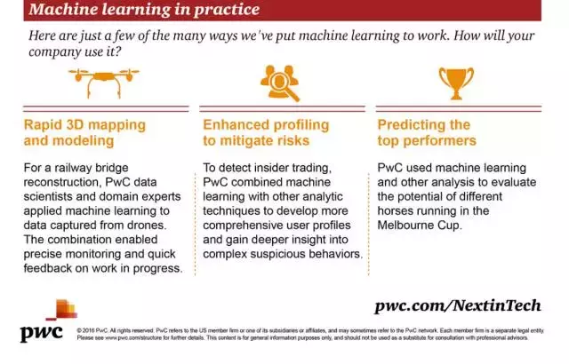 选自PwC 作者:Alan Morrison、Anand Rao 参与:吴攀、晏奇 机器学习正在进步,我们似乎正在不断接近我们心中的人工智能目标。语音识别、图像检测、机器翻译、风格迁移等技术已经在我们的实际生活中开始得到了应用,但机器学习的发展仍还在继续,甚至被认为有可能彻底改变人类文明的发展方向乃至人类自身。但你了解现在正在发生的这场变革吗?四大会计师事务所之一的普华永道(PwC)近日发布了多份解读机器学习基础的图表,其中介绍了机器学习的基本概念、原理、历史、未来趋势和一些常见的算法。为便于读者阅读,机器之心对这些图表进行了编译和拆分,分三大部分对这些内容进行了呈现,其中也加入了一些扩展链接,希望能帮助你进一步扩展阅读。