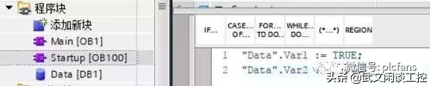图7 添加DB块变量 然后新建一个Startup事件OB块,写如下程序(SCL语言):