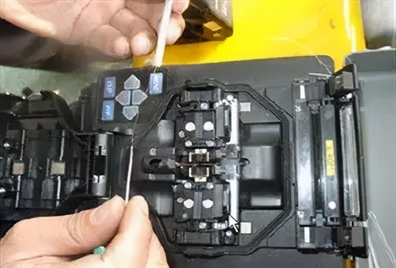 步骤14:用沾酒精纸巾将光纤擦试干净