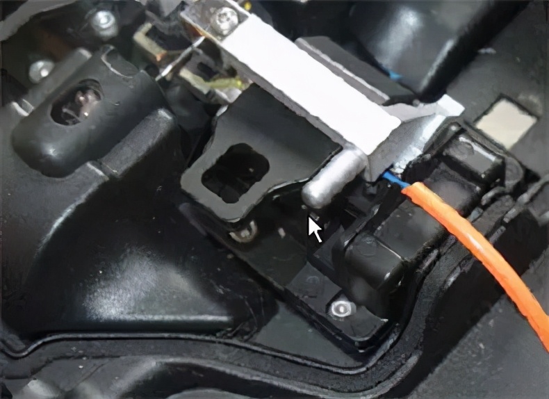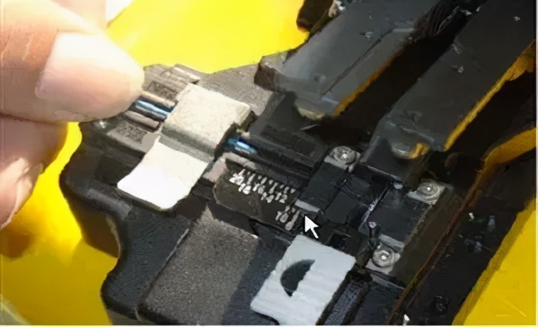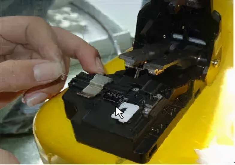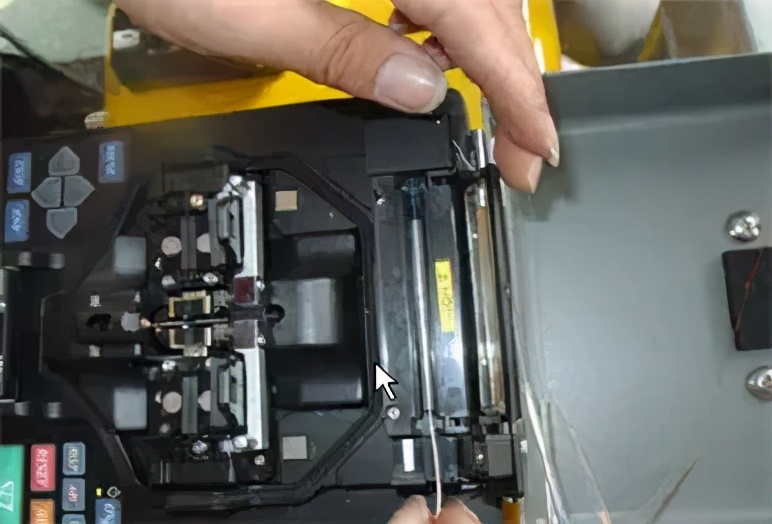 步骤16:将斩好的光纤放到光纤熔接机的一侧(如下图最好)
