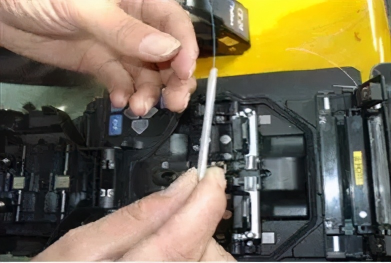 步骤21:用沾酒精纸巾将光纤擦试干净