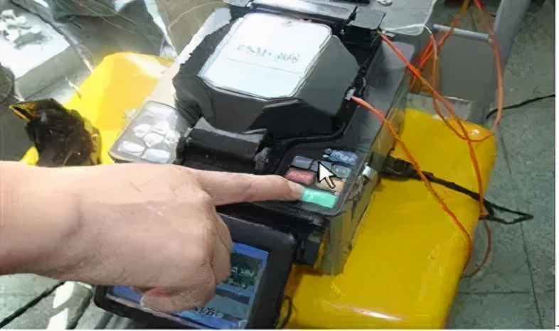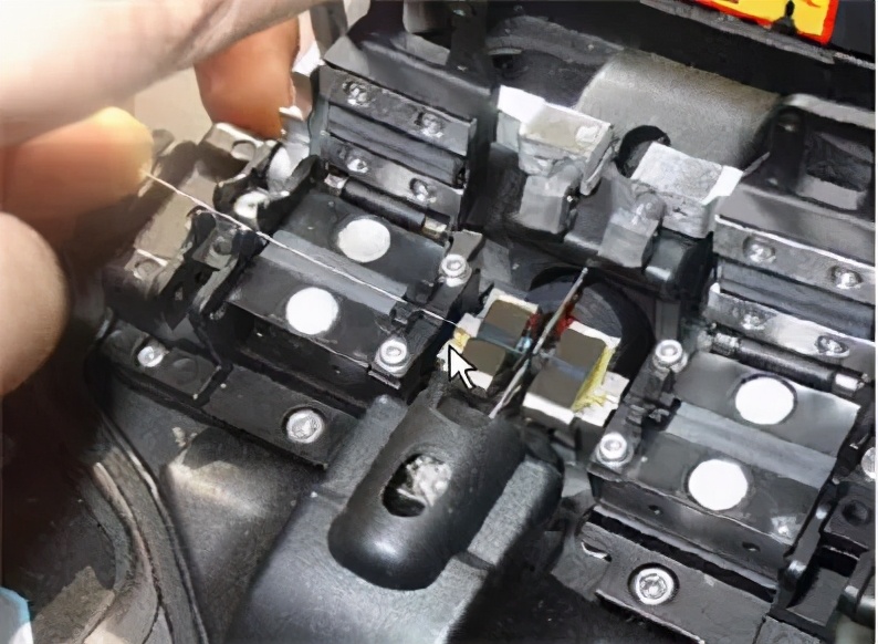步骤23:将斩好的尾纤放到光纤熔接机的另一侧(两光纤尽量对齐)