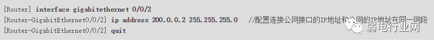 四、检查配置结果 配置PC1的IP地址为192.168.1.2/24,网关为192.168.1.1;PC2的IP地址为192.168.2.2/24,网关为192.168.2.1。 配置外网PC的IP地址为200.0.0.1/24,网关为200.0.0.2。 配置完成后,PC1和PC2都可以Ping通外网的IP 200.0.0.1/24,PC1和PC2都可以访问Internet。