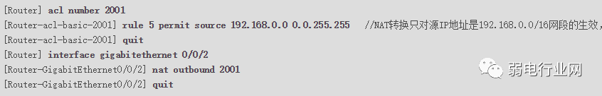 二、配置思路采用如下思路进行配置: 1、配置交换机作为用户的网关,通过VLANIF接口,实现跨网段用户互访。 2、配置交换机作为DHCP服务器,为用户分配IP地址。 3、配置路由器通过NAT转换,使用户可以访问外部网络。