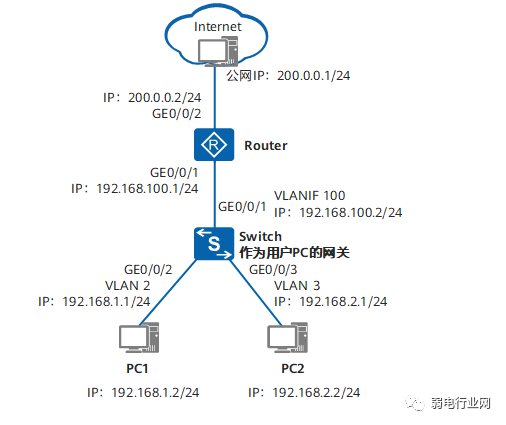 这里面补充下:什么是vlanif?它与vlan的区别? 有不少朋友多次问到这个vlanif接口,这里面弱电君补充下: vlanif就是创建三层接口时来用的,它是虚接口,可以配置IP地址;而vlan就是纯属二层vlan ID标识符,相当于对数据打标签。 划分VLAN后,同一VLAN内的用户可以互相通信,但是属于不同VLAN的用户不能直接通信。为了实现VLAN间通信,可通过配置逻辑的三层接口(VLANIF接口)来实现。 当交换机需要与网络层的设备通信时,可以在交换机上创建基于VLAN的VLANIF接口,用于通信,所以文中配置了多个vlanif,可以把vlanif想象成路由器的一个端口就更加容易理解了。