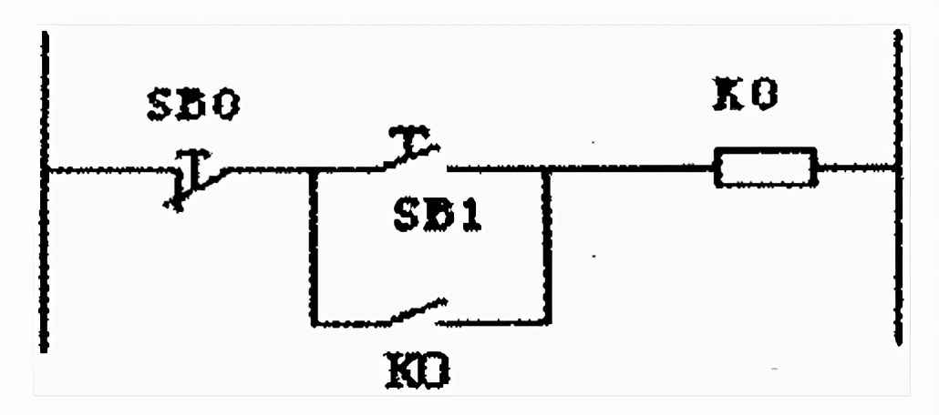 图2为"起保停控制"电气原理图,在该系统中,按钮SB0用于停车控制,因此使用其常闭触点串联于控制线路。SBl为起动按钮,使用其常开触点。若使用相同的设备(即停车SB0用常闭触点,起动SBl用常开触点),利用PLC进行该控制,则需编程梯形图程序(图3):