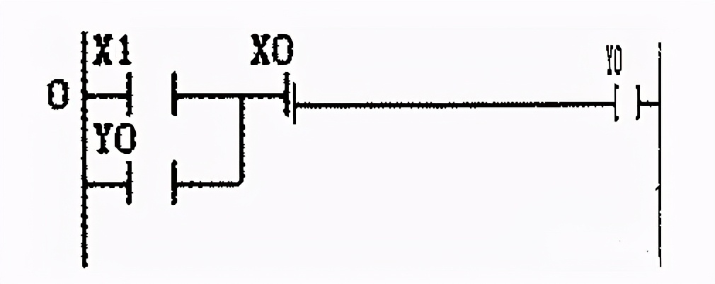图3 "起保停控制"梯形图程序(停车按钮使用常闭触点) I/O分配:SB0--X0,SBl--Xl,输出Y0