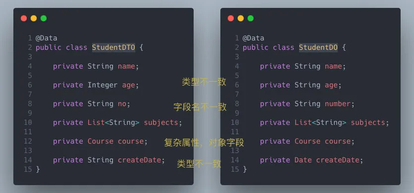 使用方法相比 BeanUtils, BeanCopier 稍微多了一步。 对比studentDO与 studentDTO对象: