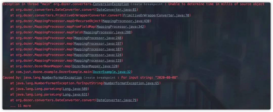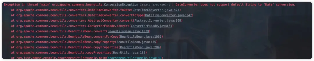 不过,上面的代码如果你这么写,我们会碰到第一个问题,BeanUtils 默认不支持 String转为 Date 类型。