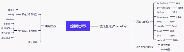 栈及堆的相似之处在于,他们的内存空间都是在程序运行时得到申请分配的。不过,在内存的使用方法上,二者存在些许不同。栈中对数据进行存储和舍弃(清理处理)的代码,是由编译器自动生成的,因此不需要程序员的参与。使用栈的数据的内存空间,每当函数被调用时都会得到申请分配,并在函数处理完毕后自动释放。与此相对,堆的内存空间,则要根据程序员编写的程序,来明确进行申请分配或释放。根据编程语言的不同,对堆用的内存空间进行申请分配和释放的程序的编写方法也是多种多样的。 下面我们来具体看下数据在栈和堆中是怎么分配和存储的 栈和堆为啥内存中既然有了栈,为啥还用堆这种内存空间。因为栈的工作的方式是先分配内存的变量后面才释放(先进后出),是从上往下填充(高内存地址到低内存地址)。但是很多变量不是单独存在的,可能和其他的变量嵌套,这样就和变量的生命周期起了冲突,为了解决这个问题,堆的设计就是从下往上分配,保证了栈中先进后出的规则不与变量的生命周期起冲突。为啥堆能解决冲突,还要设计栈这个结构呢,因为全部变量保存在堆中,会使得应用程序性能下降。 在介绍数据在栈和堆的存放原理时,需要介绍下C#中的数据类型 C#数据层次结构