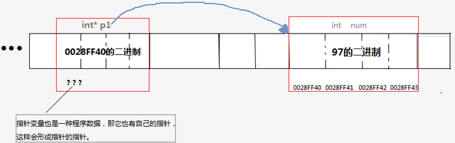 已知:num的类型是int,占用了4个字节的内存空间,其值是97,地址是0028FF40。我们从以下几个方面去分析。
