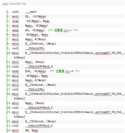 我们再对这样的一段代码进行汇编,查看编译器是如何进行指针的加法操作的: