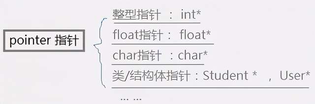 同样指针这个概念也泛指一类数据类型,int指针类型,double指针类型,char指针类型等等。