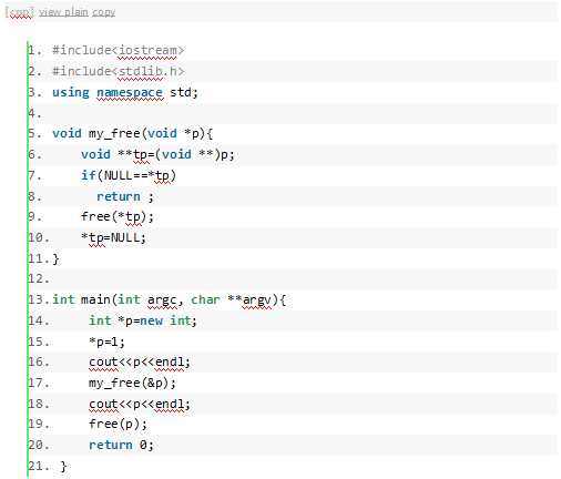 my_free调用了之后,p的值就变成了0(NULL),调用多少次free都不会报错了!