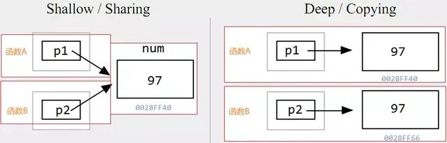 如果2个程序单元(例如2个函数)是通过拷贝他们所共享的数据的指针来工作的,这就是浅拷贝,因为真正要访问的数据并没有被拷贝。