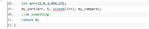 这个时候,compare就是参数为const void *, const void *类型,返回值是int类型的函数。例如: