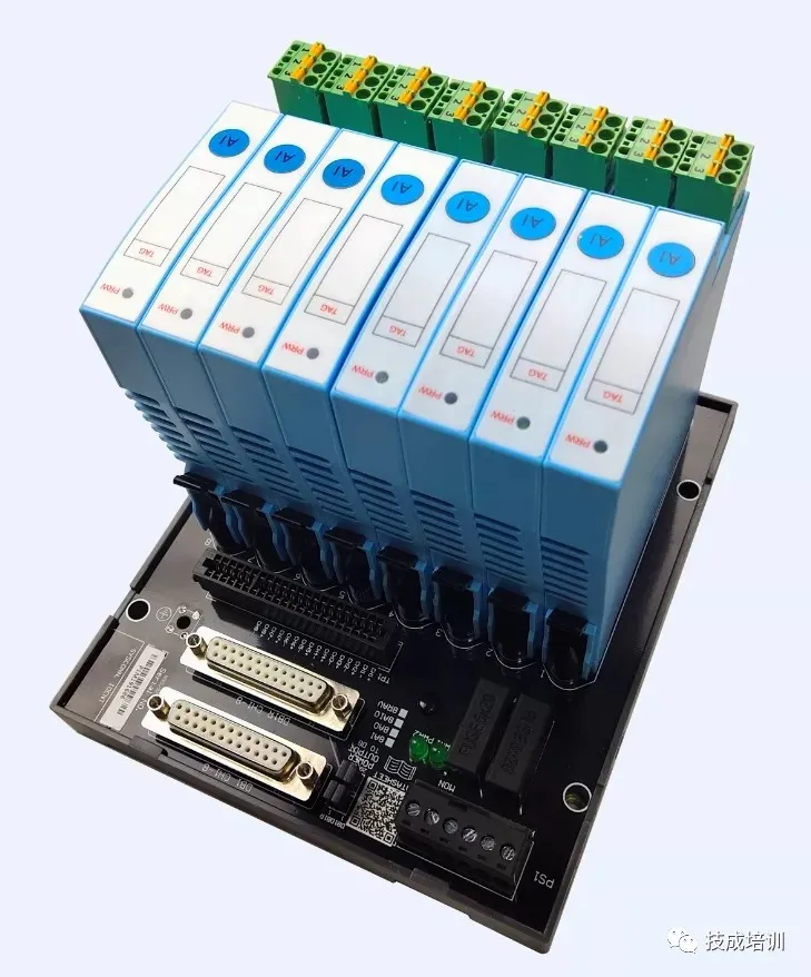 底板式安全栅,是在导轨式安全栅基础上,针对大系统的装配、维护难点而设计的,是安全栅结构形式的变革。底板式安全栅在结构上实现了快速装拆设计,通过专用的集成底板对安全栅进行供电,与控制系统连接的内部信号通过集成插接器件,使用预制电缆进行信号传递,实现了盘间连线的快速连接,大幅度提高了系统安全性能。 4 导轨式安全栅转接板