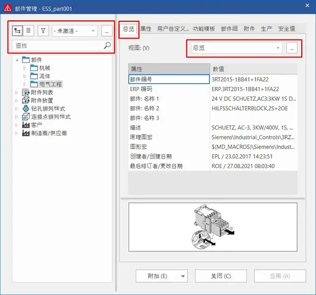 为了可以在新版本的 EPLAN 中对旧项目进行编辑,强制要求为这些项目更新项目数据库。旧项目的更新在第一次使用当前版本的 EPLAN 打开旧项目时进行。如果不更新旧的项目,则将无法在 2022 版本中打开此项目。 6 重新设计的部件管理
