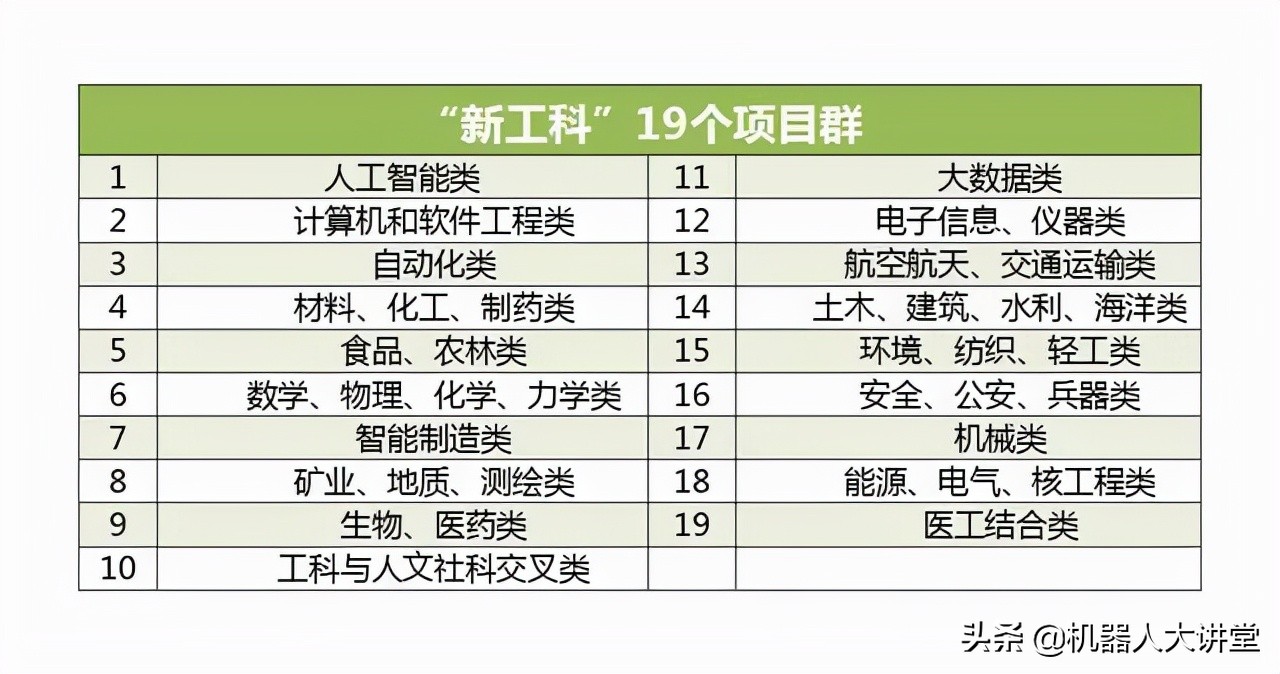 为了完善这一政策,教育部办公厅后续又印发了《关于公布首批“新工科”研究与实践项目的通知》,首次提出要求推进“新工科”建设,打造智能制造\机器人工程等专业,促进“理工”“工工”结合、“工医”“工农”“工文”交叉,面向当前产业急需建立现代产业学院,面向未来发展趋势建立未来技术学院。 与传统工科相比,“新工科”已经开始更强调学科的实用性、交叉性与综合性,尤其注重信息通讯、机器人控制、软件设计等新技术与传统工业技术的紧密结合。有专家指出,相对于传统的工科人才,未来类似机器人等新兴产业和新经济,需要的是工程实践能力强、创新能力强、具备国际竞争力的高素质复合型“新工科”人才。
