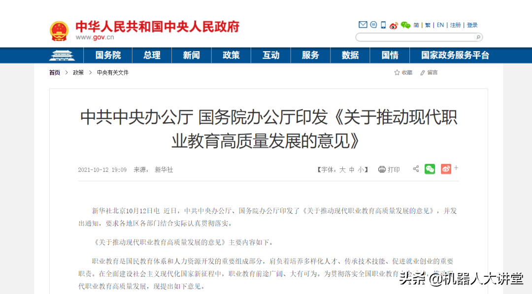 对于课程实际参与者而言,为了做到了线上线下结合、虚实结合、理与实结合,需要将企业应用项目做进教学内容,将岗位要求前置到教学活动中,这无形中增加了教育的负担,往往是年轻老师在进行参与。 为了破除这些教育改革上的实际问题,从今年下半年开年以来,国家打出了一整套组合拳。这次出台的《意见》,也将原先需要这些专业服务商进行的新工科教育培训类工作进一步放开,并直接提出上市公司、行业龙头企业可以直接下场,举办职业教育,同时鼓励各类企业依法参与举办职业教育,将实践教育的难题和蛋糕直接给到了全社会。 《意见》的路径非常明确,不仅就强化职业教育类型特色、完善产教融合办学体制、创新校企合作办学机制、深化教育教学改革、打造中国特色职业教育品牌等多方面,都进行了明确规范和实施措施,也明确了到2035年,中国职业教育整体水平进入世界前列,技能型社会基本建成。 这意味着技术技能人才社会地位会大幅提升,职业教育供给与经济社会发展需求高度匹配,同时让到2025年,职业教育类型特色更加鲜明,现代职业教育体系基本建成,技能型社会建设全面推进。当然,这也不单单是一个文件能够实现,在未来3-5年必然将有密集举措,因此可以预见机器人教育的风口即将出现。 在产学研结合以及新工科发展的背景下,这种全社会的职业教育需求客观存在。一方面分化后的职业院校需要更多具有工业应用场景的教学资源,需要更多的岗位解决学生就业出口,而另一方面制造企业需要专业对口的、能解决实际工程问题的工程技术人才和实践人才。 原先这种信息不匹配在国家政策的强行推进下,得到了一定程度的解决。而原先产学研结合需要一条腿跑职业教育市场,一条腿跑企业对接资源的情况,通过更大范围的放开市场也能得到大幅缓解,为教育和新工科相关企业的发展提供了新的可能性。 ▍改变与未来 客观而言,在目前许多高校实践的新工科教育,跑通整个流程后,不仅能减轻实际教学负担,提升学生参与度,同时也能为工程教育认证提供教学过程基础数据,同时加强学校对教学装备管理、教学过程管理、学生能力评估能力,也为机器人工程、智能制造工程、人工智能等新专业建设提供多元化、体系化的实践教学解决方案,最终建设工程技术人才库,搭建人才数据交易平台。这意味着高校将直接能为企业精准提供人力资源支持服务,打通产学研的通路,真正帮助企业提高创新能力。