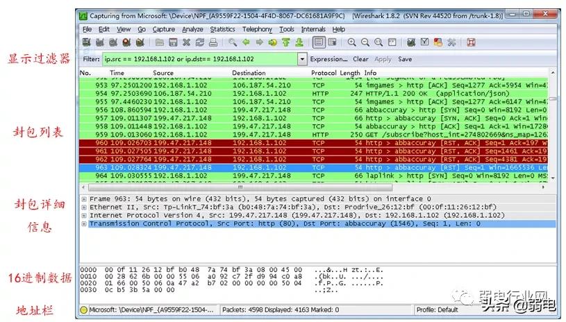 三、Wireshark工具 wireshark是非常流行的网络封包分析软件,功能十分强大。可以截取各种网络封包,显示网络封包的详细信息。使用wireshark的人必须了解网络协议,否则就看不懂wireshark了。 平时也是用的最多抓包工具, 并且是网络分析的必备工具。它用途广泛,速度快,并提供了广泛的工具和筛选器,可准确识别网络上正在发生的事情。