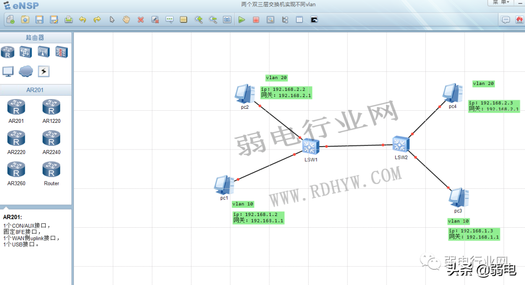 一、eNSP软件 华为ensp模拟器是华为官方推出的一款强大的图形化网络仿真工具平台,ensp模拟器主要对企业网路由器、交换机、WLAN等设备进行软件仿真,从而得以完美地呈现真实设备部署实景,并且支持大型网络模拟让你有机会在没有真实设备的情况下也能够开展实验测试、学习网络技术。