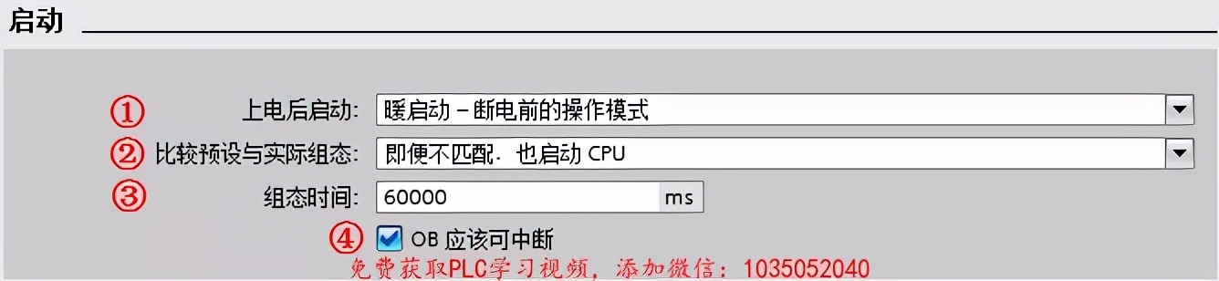 - 在“CPU 属性-常规-启动” 设置为不重新启动(保持为 STOP 模式);