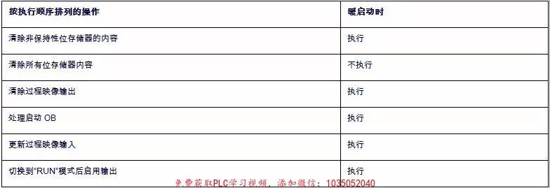 - 暖启动 - 断电前的模式:CPU 组态为“暖启动 - 断电前的模式”,且在发生掉电或故障时,CPU 处于 STOP 模式,则 CPU 将在上电时进入 STOP 模式并保持 STOP 模式;