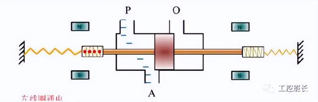 三位三通阀 左线圈通电时A、P通A、O闭,右线圈通电时A、O通,A、P闭,都断电时A、P和A、O都闭。
