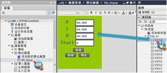 完成以上操作后,在面板类型编辑器中点击“发行版本”。 8. 在 HMI 画面管理下的弹出画面中添加新的弹出画面命名为“PID_Popup”,调整画面为合适的大小,并从项目库的类型中添加“PID_FP”到该弹出画面中,如图11 。