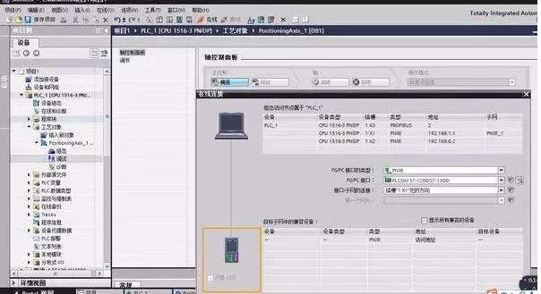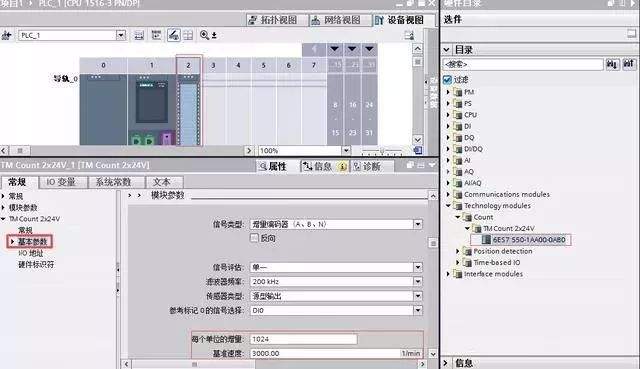 系统搭建示意图 本文中的实例项目使用 CPU1516-3PN/DP 通过 PN 通讯控制 G120 变频器,通过安装在电机后面的编码器连接到工艺模块 TM Count24V 作为位置反馈。