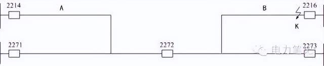 远方跳闸装置 我们以一个完整串中的两个元件都是线路的情况,举例说明3/2断路器接线方式设置远方跳闸装置的必要性。见下图。