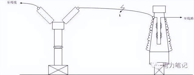 当故障发生在K1或K3点时,故障点处于线路保护区外、母差保护区内,母差保护动作跳开边开关,但此时故障并未消除。由于采用3/2断路器接线,母差保护动作不能使线路高频保护停信,使线路对侧断路器瞬时跳闸,同时,由于在线路L1的保护区外,中开关也不能瞬时跳闸。因此,当故障发生在K1或K3点时,要靠线路对侧保护二段带时限切除,后果是延长了故障切除时间,对系统稳定不利。 当故障发生在K2点时,对于线路L2属于内部故障,而对于线路L1属于外部故障,当L2保护瞬时动作跳开2212和2213后,故障并没有消除,需靠2212失灵保护动作断开2211和线路L1对侧的开关,才最后切除故障,其后果与前一种相同。 在220kV系统中发生这种故障,其后果相当严重。但仔细分析,发生这种故障的机率是极少的。另外,也可在设计上采用相应措施,将这种故障机率减到最小。现以K1点故障为例加以说明。K1点故障有3种可能:断路器外绝缘闪络、引线对地闪络、CT外绝缘闪络,见下图。