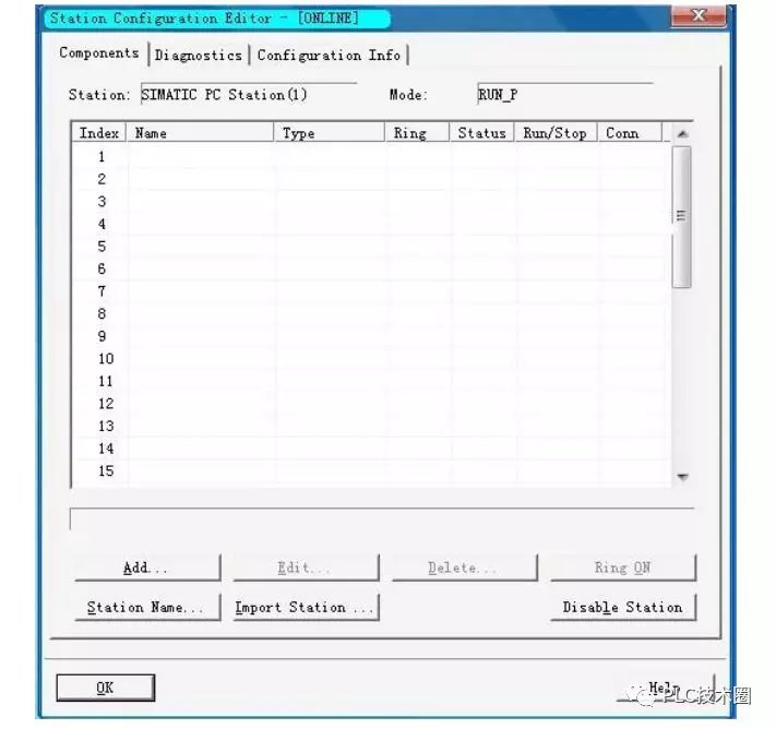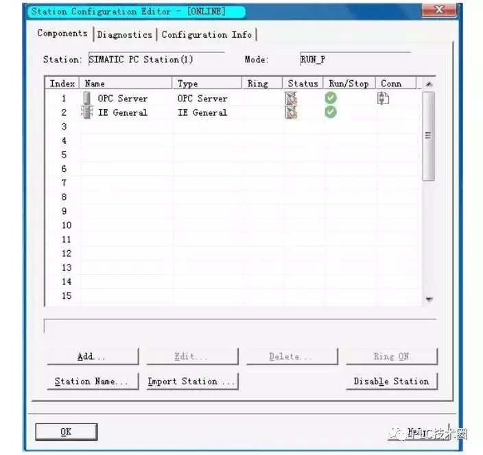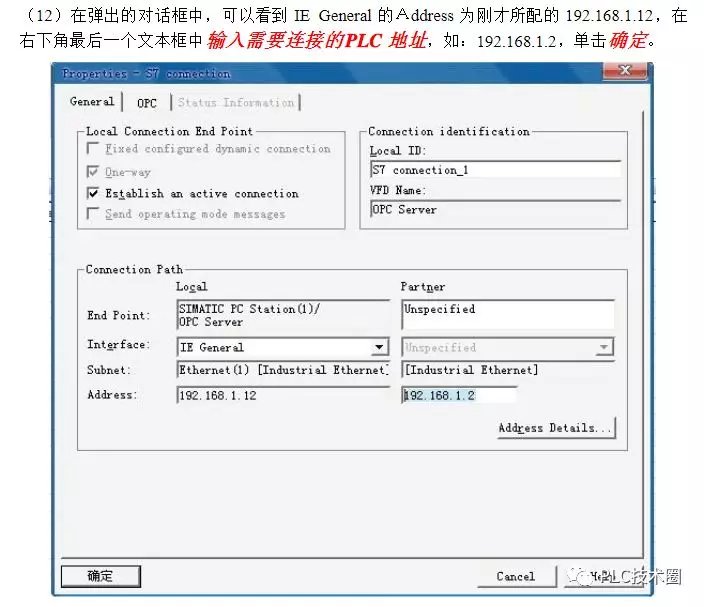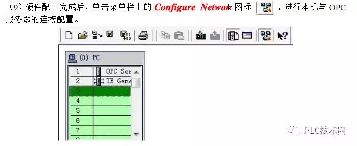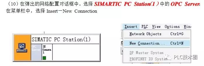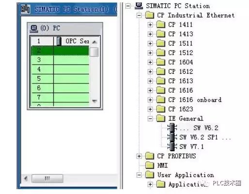 3)右键新建的项目图标,插入一个PC站点(SIMATIC PC Station),如下图 4)单击新生成的SIMATIC PC Station(1),在右侧自动显示PC站点的硬件配置:Configuration5)双击Configuration图标,在弹出的硬件配置对话框中,插槽1选择OPC Server(选择SW V7.0) 6)以同样的道理在插槽2,选择IE General(SW V6.2) 7)在将SW V6.2拖入插槽2后,会自动弹出IE General参数对话框 8)在IP address 中输入本机的IP地址,如:192.168.1.12,下面的Subnet 中单击New,确定即可出现Ethernet(1),单击OK完成硬件配置