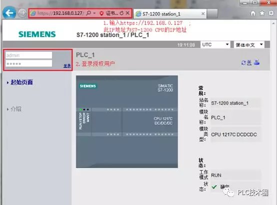 3.通过PC 访问Web页面 首先需要确保PC机与S7-1200 CPU位于同一个以太网络中,然后打开 Web 浏览器,输入 URL "https://ww.xx.yy.zz",其中"ww.xx.yy.zz"为 S7-1200 CPU 的 IP 地址。 并在Web服务器上登录授权用户,如图6.所示。 图6.登录Web服务器