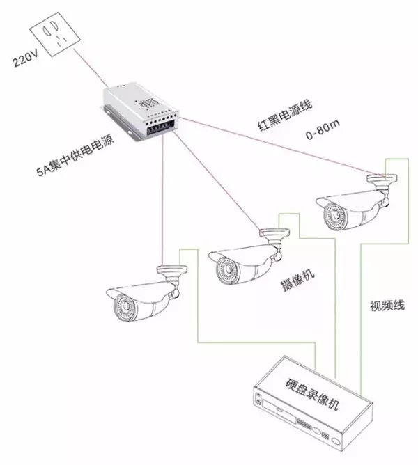 前言: 视频监控系统供电非常重要,本期我们就来看下安防监控系统的供电模式,主要包括三种供电模式: 一、独立供电模式 二、集中供电模式 三、POE供电模式(4种POE供电方式) 网络摄像机电源的配置,最忌讳什么?网络摄像机电源的选择还需要注意什么问题?摄像机安装时注意事项! 一、独立供电的好处 独立供电是指在每个摄像机前端安装独立的安防监控电源,此安防监控电源只为一个摄像机提供电力供应。 1、 检修简单,更换电源简易 因为每个摄像机都有独立的安防监控电源,在摄像机出 现故障的时候,可以迅速就出现故障的摄像机进行故障排查。若检查出因安防监控电源引起的故障,仅需对单个故障电源进行修理货更换。 2、 避免出现监控系统瘫痪现象 集中供电模式下的供电系统一旦出现问题,且没有采 用UPS,将会导致整个监控系统无法正常工作,陷入瘫痪状态。 而在独立供电模式下,因安防监控电源的故障,而导致单个或数个摄像机无法工作,避免出现监控系统瘫痪现象。 独立供电的不足 1、成本过高 多个独立安防监控电源的成本之和,一般要比同等功率输出的集中电源要高。此成本,不将线缆成本计算在内。 2、遭遇外力破坏的几率更高 因为独立安防监控电源往往与摄像机距离较近,若是在室外条件下,更容易遭受日晒雨淋、雷击等外力破坏因素的影响。因此选择户外专用的独立安防监控电源,尤其要注重该独立安防监控电源的防护性能 二、集中供电 在220V电源处接12V集中电源一个,再用2*1.0红黑电源线分别接给摄像头,12V供电距离不可超过100米。在接个单个电源线接头,再把单个电源线接头和监控摄像头电源接头相连接即可。集中供电方式是指在监控室或某个中间点采用12V开关电源向前端负载集中供电。与独立供电模式相比,最大的差别在于一个电源可以为多个摄像机提供电力供应。 集中供电的原理图: 集中供电的作用 数据中心的管理对象主要包括基础设施与IT基础架构两大部分,如配电、网络设备、安保等。 集中监控的目的就是要能够通过管理与技术的应用,对基础设施与IT基础架构的运行情况进行监视,实现故障与异常的实时发现与通知;此外还可以通过对监控数据搜集与整理,为容量管理、事件管理、问题管理、符合性管理提供分析的基础,最终实现数据中心高可用性的目标。 集中供电的优点 1、成本较低 虽然采取集中供电模式,用到的线缆往往比独立供电模式下用到的线缆要多,但是得益于集中电源的高性价比,采用集中供电模式的供电系统成本往往为性价比最高的供电系统。 2、集中维护简单 采取集中供电模式,线路敷设方便,施工方便,便于管理。 3、总体能耗低 经实际工程案例证明,集中供电系统的总能耗低于独立供电系统的总能耗。 集中供电的缺点 1、 前期配置复杂 监控摄像机在启动瞬间需要很大的启动电源,而且远距离的电力输送会 产生损耗,因此集中供电的功率并非是所有监控摄像机的功率相加。采取集中供电模式,需要工程师对整个监控系统有详尽了解,以便做出合理方案。 (实际上,由于摄像机在启动瞬间,启动电流很大,再加上工程上远距离传输的损耗,所以,监控摄像机需要的电源,不是简单地把所有摄像机的额定功率相加。正确的做法是把整个监控系统的摄像机的额定功率相加再乘以1.3倍,这个是摄像机实际需要的功率,然后再加上约30%的损耗;最后再加上30%的余量,作为将来扩容使用。) 2、存在出现监控系统瘫痪现象的可能性 没有采用UPS电源的集中供电模式下的供电系统一旦出现问题,将会导致整个监控系统无法正常工作,陷入瘫痪状态。 三、POE供电主要有四种方式 这种方法PoE交换机直接通过网线接到支持PoE供电的无线AP和网络摄像机上,这种方法最简单,但也需要注意如下两点: ①确定PoE交换机以及无线AP或者网络摄像机是否是标准的PoE设备 ②要仔细确认购买的网线的规格,网线质量很关键,质量不好的网线会导致AP或者IPC无法受电或者不断重启。 原理图如下: 2、交换机支持POE,终端不支持POE 这种方案PoE交换机出来接PoE分离器,PoE分离器将电源分离成数据信号和电力,有两根输出线,一根是电力输出线,一根是网络数据信号输出线即普通网线。电力输出有5V/9/12V等,可以匹配各种DC输入的非PoE受电终端,支持IEEE 802.3af/802.3at标准。数据信号输出线即普通网线直接接到非PoE受电终端的网口即可。 原理图如下: 3、交换机不支持POE,终端支持POE 这种方案交换机出来接PoE供电器,PoE供电器将电力加到网线上之后传输给终端。这种方案利于扩展原有的布线网络,对原有网络没有影响。 原理图如下: 4、交换机和终端都不支持POE 这种方案交换机出来接PoE供电器,再接PoE分离器,最后传输给终端。 方案三和方案四适合于传统网络的改造,即原来的交换机不支持PoE供电,但是又想利用PoE供电好处的场合。 原理图如下: poe供电器的连接方式 那实际应用时,网线应该怎么接呢,很多朋友对POE供电技术有所了解,知道1 2 3 6或者4 5 7 8等供电线序问题,所以怕万一接错,导致设备烧毁等严重后果。 POE供电标准对POE交换机、POE供电模块(POE供电器)等PSE设备的要求是只要支持1 2 3 6 和4 5 7 8供电线序的其中一种即可,当然最新的802.3at 4pair标准需要两种都同时支持。而对POE受电设备的要求是必须同时支持两种供电方式。 四、独立供电与集中供电