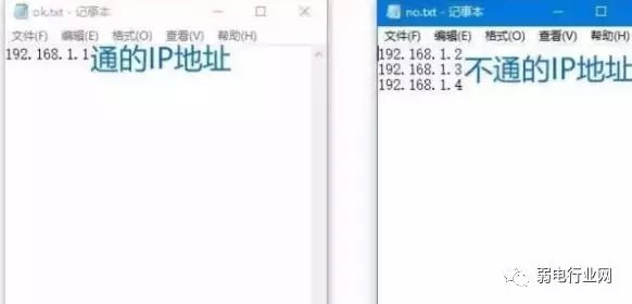 答案肯定是有的,我们来看代码。 for /l %D in (1,1,255) do (ping 192.168.1.%D -n 1 && echo 192.168.1.%D>>ok.txt || echo 192.168.1.%D >>no.txt) 这段代码会将ping通的IP和不通的IP分别放到两个文件里面,这样是不是很方便啦,如下图: