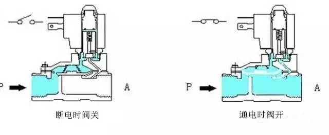 原理:常闭型通电时,电磁线圈产生电磁力把敞开件从阀座上提起,阀门打开;断电时,电磁力消失,弹簧把敞开件压在阀座上,阀门敞开。(常开型与此相反)